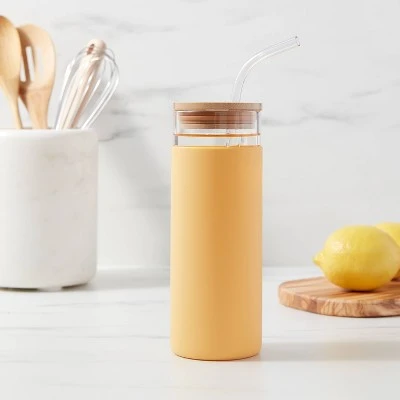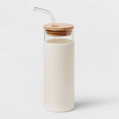 Whether you’re reading, writing or busy with other activities, you’ll stay hydrated when you keep this 16.9-Ounce Glass Tumbler with Straw and Silicone Sleeve from Threshold™ close by. This glass tumbler features a solid-color design with a transparent top and wood-tone lid for an elegant construction that suits your daily style. The included straw helps you drink conveniently while the silicone sleeve helps provide a secure fit. Use this lidded tumbler at home, at the office or anywhere on the go to sip your favorite cold beverages with ease.