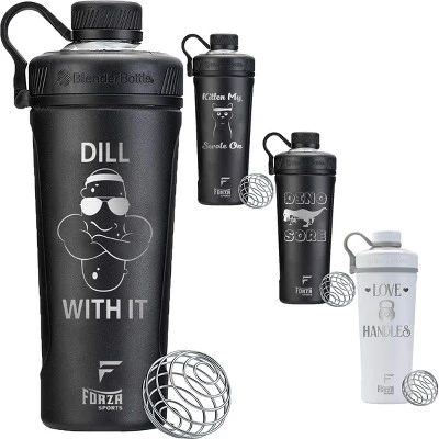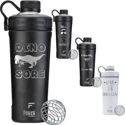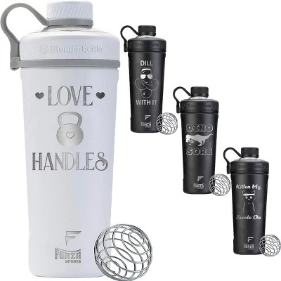 The Blender Bottle x Forza Sports 26 oz. Radian Insulated Stainless Steel Shaker Cup features rock-solid insulation, a modern center-mounted spout, a detachable carry loop, and Blender Bottle’s most secure seal to date. Say goodbye to lumpy protein shakes with the BlenderBall wire whisk. It delivers smooth protein and nutrition shake with ease, found only in Blender Bottle brand shakers. This refined shaker with a sleek, modern design is sure to stand out. Double wall vacuum insulation keeps drinks cold for up to 24 hours. Prevents condensation from forming on bottle. Versatile carry loop detaches at the base to secure your key ring or clip the bottle to your gym bag. Wide-mouth design for big scoops and easy cleaning. Sleek, modern design. 26 oz. capacity. Hand wash only. Why the Whisk Ball? Unlike stationary mesh grates or other in-lid elements, the BlenderBall whips around inside the bottle as you shake. The BlenderBall is springy and bounces off both the top and the bottom of the bottle, working against the liquids. Made from electropolished 316 grade stainless steel, the same material used in surgical instruments and implants. Add ingredients like peanut butter, applesauce or yogurt to your protein or meal-replacement shakes for added flavor – the BlenderBall whips them in with ease. The BlenderBall will never rust, chip or peel. Every BlenderBall is manufactured using a unique multistage process designed to ensure safety, quality, and longevity.