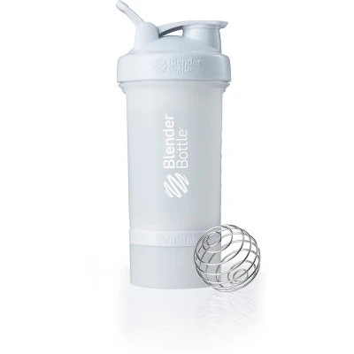 Carry supplements, snacks, pills and more all in one with the BlenderBottle ProStak. This all-in-one shaker cup offers a variety of features to make on-the-go nutrition easier than ever. The wire whisk ball delivers smooth, great-tasting drinks —simply add your ingredients, drop in the BlenderBall and shake. A unique storage jar easily attaches and detaches from the bottom of the bottle, offering compact storage that’s available right when you need it. There’s also a space-saving pill tray that locks into the jar lid, allowing you to carry both vitamins and powders in the same bottle.