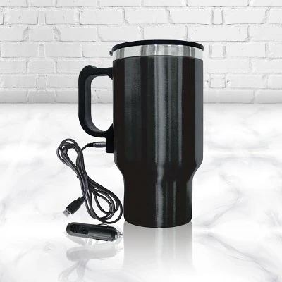 The Brentwood CMB-16B Stainless Steel 16oz 12 Volt Heated Travel Mug heats up fast and keeps liquids hot while plugged in. Conveniently take coffee and tea on the go with the built-in handle and included travel lid. Contents stay hot even when unplugged thanks to stainless steel double wall vacuum insulation.