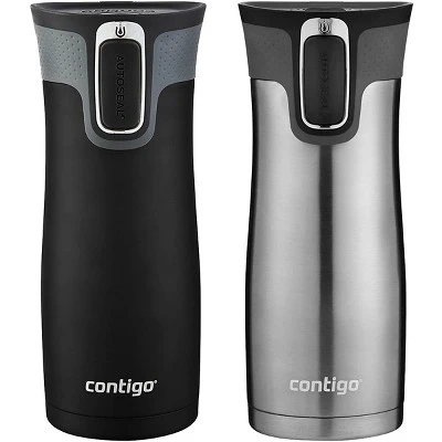 The Contigo 16 oz. West Loop Vacuum Insulated Stainless Steel Travel Mug 2-Pack is made for the modern movers, shakers, commuters, travelers and the urban explorer in all of us. This mug offers ultimate convenience with a spill-proof AutoSeal lid and an easy, one-handed push button. Your favorite beverages will stay piping hot for hours on your busiest days! AutoSeal technology is leakproof and spill proof. Thermalock vacuum insulation and BPA-free, stainless steel body. Drinks stay hot for up to 7 hours or cold for up to 18 hours. Fits most car cup holders. Lid is top-rack dishwasher safe; Hand wash body. Includes two travel mugs!