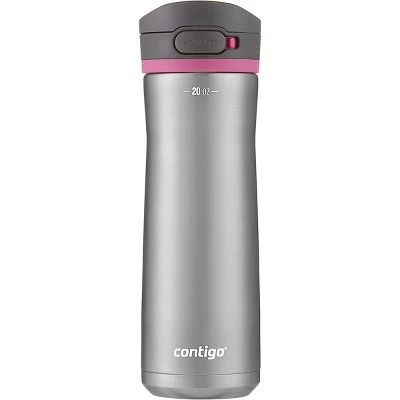 Pop, sip, and click your way to better hydration with the Contigo 20 oz. Jackson Chill 2.0 Vacuum Insulated Stainless Steel Water Bottle! It features an AutoPop lid and wide mouthpiece for convenient, one-handed drinking. Whether you’re working out or working at your desk, the double-wall vacuum insulation keeps drinks cold for up to 24 hours and hot for up to 6 hours. When you’re done drinking simply click the lid back into place, then lock the lid for extra protection. The leakproof design means no spills in your car or on your desk. Carrying it around is easy thanks to the integrated handle. Button lock ensures top doesn’t open accidentally. Top-rack dishwasher-safe. Fits most car cup holders.