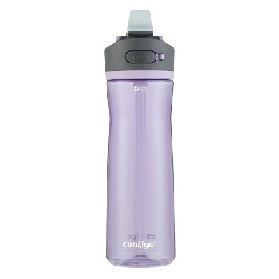 Push, sip, and press your way to better hydration. The Contigo AUTOSPOUT Tritan Water Bottle features push-button technology for easy one-handed drinking. The leakproof lid means less mess wherever you go, and the spout cover helps to protect the spout from dirt and grime so you can drink confidently. Carrying it around is easy with the integrated handle that swings up and sets back down to stay out of the way. Sip every last drop with the angled pop-up straw that fits securely into the lid. The lid and 100% BPA-free body is top-rack dishwasher-safe for easy cleanups. Fits most car cup holders.