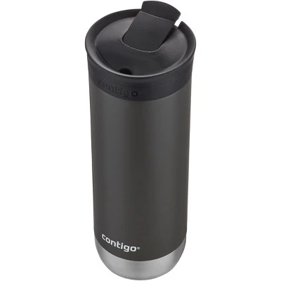 The Contigo Huron 2.0 SnapSeal Insulated Stainless Steel Travel Mug keeps drinks at their ideal temperature for hours thanks to Thermalock double-wall vacuum insulation. The 16 oz. keeps drinks hot for up to 6 hours and cold for up to 12. The 20 oz. keeps drinks hot for up to 7 hours and cold for up to 18. The one-piece SnapSeal lid allows for one-handed drinking with no lids or caps to remove or misplace and is leak-proof when closed. Available in 16 oz. and 20 oz. capacity. Fits car cup holders and under most single-serve brewers. Top rack dishwasher-safe lid, handwash body.