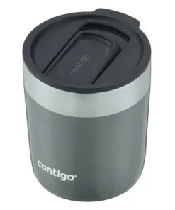 Sip hot coffee while working from home or an iced drink while walking around your neighborhood with the Contigo Stainless Steel Vacuum-Insulated Tumbler with Splash-Proof Slider Lid, 10 oz. With a double insulated wall that keeps drinks hot for up to 4 hours or cold for up to 10 without sweat or condensation, a splash-proof lid prevents splashes on you and your space when closed, and a nonslip grip base that helps prevent slipping or scratching on surfaces, this tumbler is the perfect choice for anyone looking to sip confidently wherever they are. The tumbler’s sophisticated design is available in bold colors, and, to make cleanup easy and convenient, the tumbler’s body and lid are both dishwasher-safe and BPA-free.