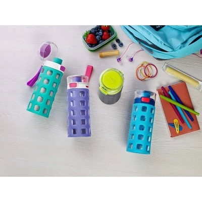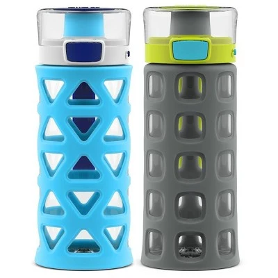 Ello Dash 16-ounce Tritan kids water bottle 2-pack is perfectly portable and recess ready. Its locking flip lid with one-handed push button makes it easier than ever to keep kids hydrated on-the-go. The 16-ounce size holds just the right amount of water, and ultra-durable Tritan plastic paired with a silicone sleeve reduces chances of breaks. Chug comfortably with Dash’s soft spout lid that threads off for ice and cleaning. All Ello Kids products feature an FDA food-grade silicone spout with Guardian Technology that keeps the drink surface clean. Pop, chug, close and go! All parts certified BPA free. All parts top rack dishwasher safe, no need to remove sleeve for cleaning. Do not microwave or freeze. Intended for use with cold beverages only.