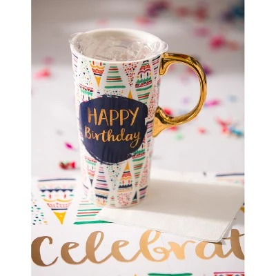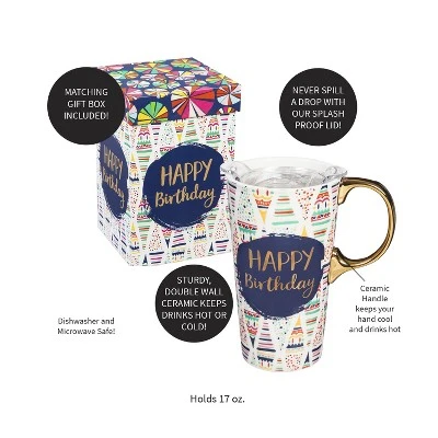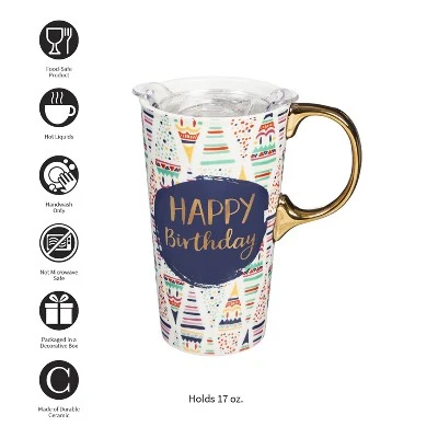 - Travel mug holds up to 17 oz. of hot or cold liquid.