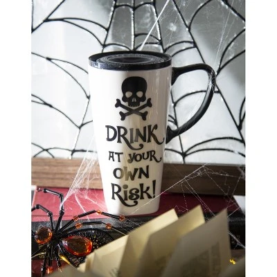 Drink your favorite Halloween beverage at your own risk when using this 17 oz Ceramic FLOMO 360 Travel Cup featuring a spooky skull and crossbones design. At Evergreen, we are committed to producing premium, quality products to bring a touch of color and personality to your home. We respect and celebrate the uniqueness in everyone by offering one of the world’s largest selections of home and garden decor.