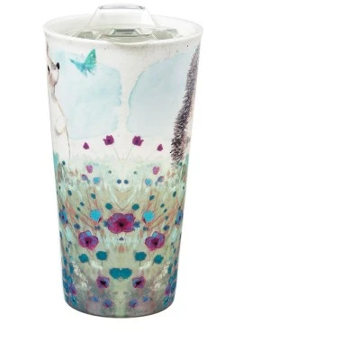 This 17 oz. ceramic travel cup comes with a slide closure Tritan lid and a matching gift box. It has a white handle. The mug features an illustration of a hedgehog in a floral meadow looking at a blue butterfly. Microwave & dishwasher safe, remove top. At Evergreen, we are committed to producing premium, quality products to bring a touch of color and personality to your home. We respect and celebrate the uniqueness in everyone by offering one of the world’s largest selections of home and garden decor.
