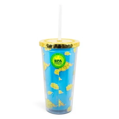 Just how do you expect to track down all seven Dragon Balls if you don’t hydrate!? From Dragon Ball Z, this acrylic travel cup features Goku in a sea of clouds. Includes gold down screw-on lid and reusable straw. Officially licensed. Produced by Just Funky.