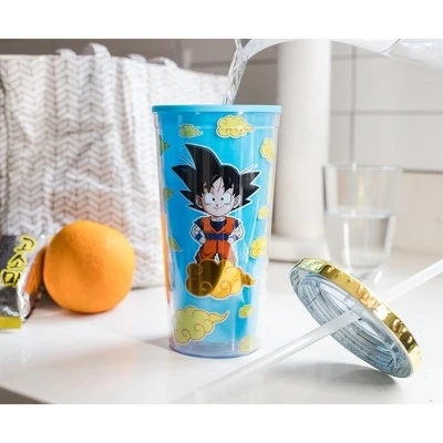 - DBZ FANDOM: Stay hydrated with this fun Goku carnival cup, complete with screw-on lid and reusable straw!