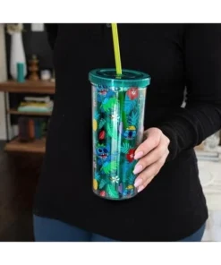 Toynk Silver Buffalo Disney Lilo & Stitch Tropical Summer Icons Carnival Cup with Lid and Straw