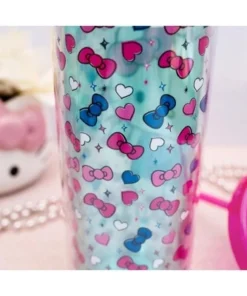 Silver Buffalo Hello Kitty Bows and Hearts Carnival Cup with Lid and Straw | Holds 20 Ounces