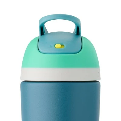 - 14-ounce insulated stainless-steel flip-top water bottle, featuring flip straw, locking lid, and kid-friendly operation