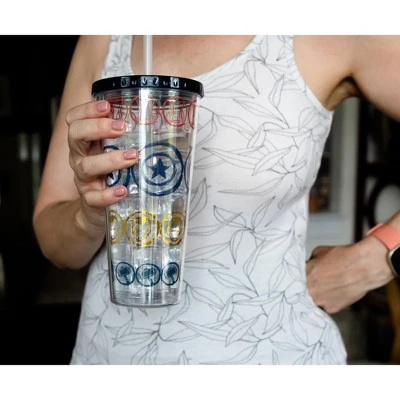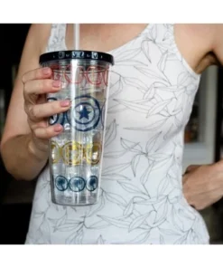 - SUPER DESIGN: Clear cup features colorful icons of popular Marvel superheroes, including Iron Man, Captain America, Black Widow, and Thor.