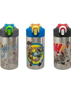 Zak Designs Kids Stainless Steel 15 oz. Durable Water Bottle Spout Cover Push Action Lid BPA-Free