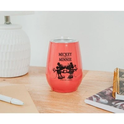 Enjoy your favorite beverage in style with this romantic Disney Mickey and Minnie Mouse stainless steel tumbler! Fun and functional, this tumbler is great for using around the house, at the office, parties, and more! Officially licensed. Produced by Silver Buffalo, a trendsetting housewares and home decor company based in the heart of New York City. A Toynk exclusive!
