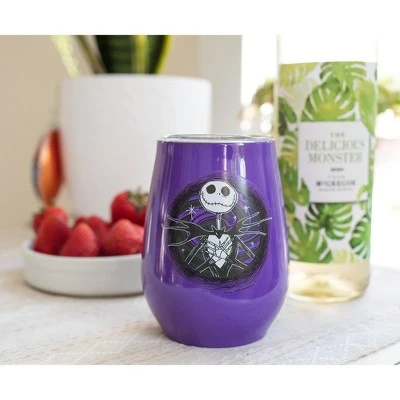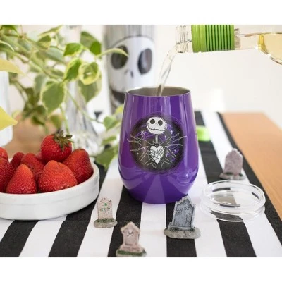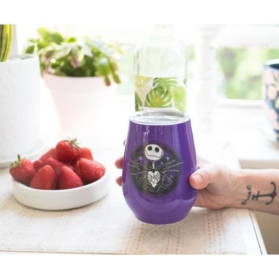Enjoy up to 10-ounces of your favorite beverage in style! This officially licensed Nightmare Before Christmas tumbler features Jack Skellington and is made of durable, double-walled stainless steel. This tumbler is top-rack dishwasher safe. Not safe for the microwave. Makes a great gift for Disney fans! Produced by Silver Buffalo, a trendsetting housewares and home decor company based in the heart of New York City.