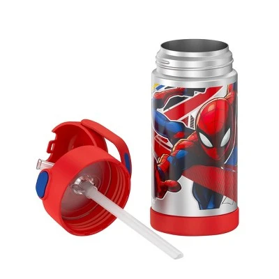 Kids love FUNtainer® products from Thermos® brand, but parents love them even more. The FUNtainer 12oz Vacuum Insulated Stainless Steel Water Bottle with a silicone straw keeps drinks cold for up to 12 hours. No make believe required. FUNtainer products are always made with love from BPA-free materials. The double wall stainless steel construction is built to handle drops, dings and assorted roughhousing. The 12oz bottle includes an integrated carry handle with soft-touch grip, making it easy for kids to carry with them throughout the day. The handle can also be folded down when not in use. Keep germs away with the hygienically covered straw which is removable for easy cleaning. To clean, you can pop your FUNtainer water bottle in the dishwasher; however hand washing is recommended. Not for use with hot liquids.