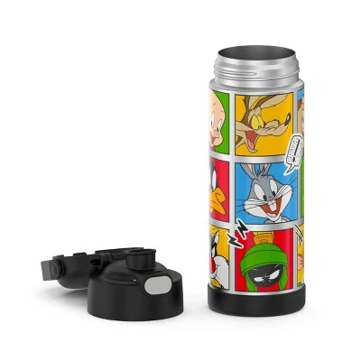 The FUNtainer® 16-ounce Vacuum Insulated Stainless Steel Water Bottle with Spout keeps drinks cold for up to 12 hours. The double wall stainless steel construction is built to handle drops, dings and assorted roughhousing. Includes an integrated carry handle with soft-touch grip, making it easy for kids to carry with them throughout the day. Keep germs away with the hygienically covered drinking spout. To clean, you can pop your FUNtainer water bottle in the dishwasher; however washing by hand is recommended.
