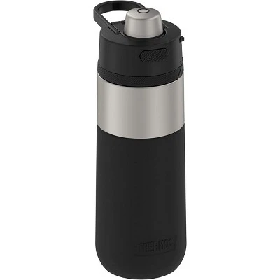 The Thermos 18 oz. Guardian Stainless Steel Vacuum Insulated Water Bottle keeps you in the game. Drinks stay cold for up to 14 hours and features an easy-grip silicone sleeve. Equipped with a hygienic covered spout, locking cap and carry handle, this bottle has you completely covered from uphill hikes to downtown treks. You can even keep track of your daily intake thanks to the rotating hydration meter! Dishwasher safe. Please Note: Not for use with hot liquids.
