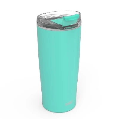 The tumbler fits in most car cup holders, with a flip lid that locks back when open and prevents leaks when closed. it is vacuum insulated, keeping hot drinks hot and cold drinks cold, and stays free of condensation. Durable and BPA free. It should be hand-washed, though the lid is dishwasher safe.